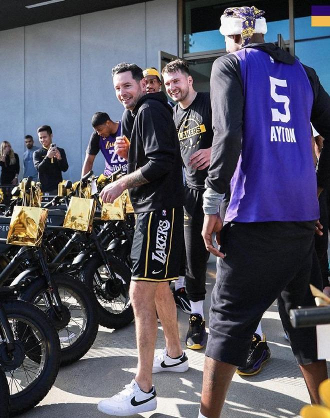 东契奇为湖人全体队员、教练组成员及篮球运营部门工作人员,每人赠送了一辆全新的电动助力自行车,合计送了100多辆。