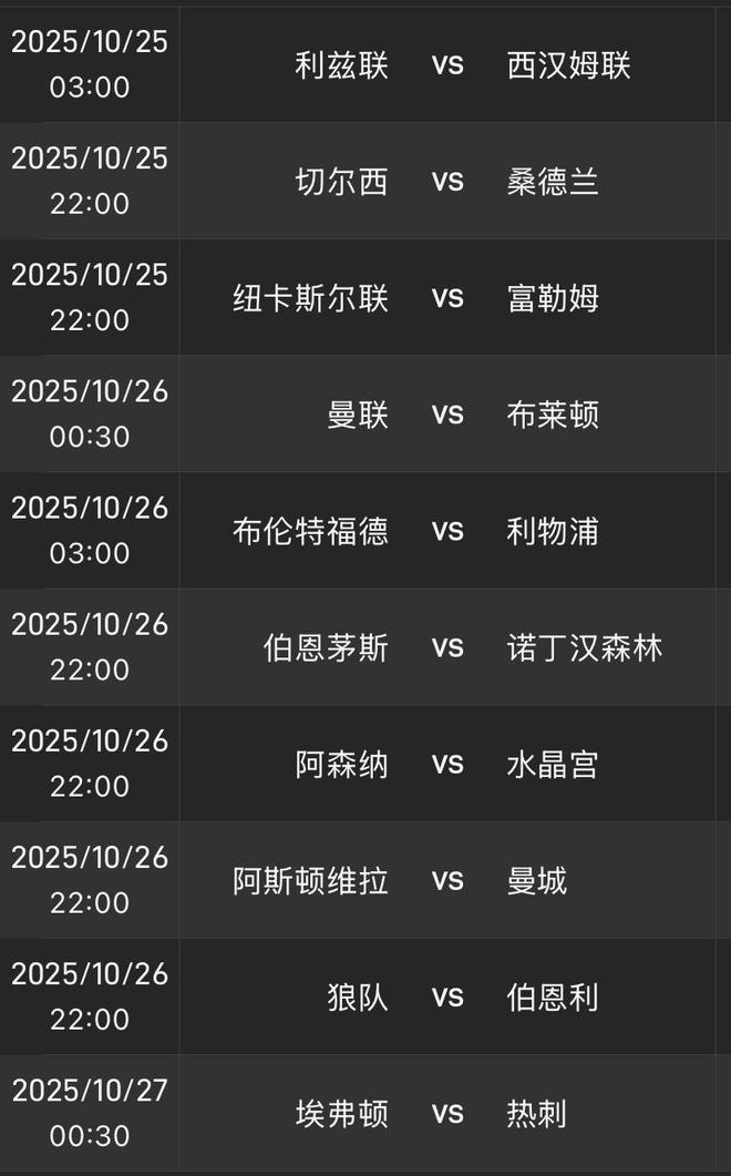 英超第9轮开球时间(北京时间)