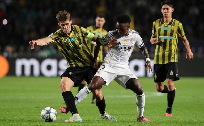 第24分钟,主队传球失误,马斯坦托诺插上,被门将直接放倒,裁判吹罚点球!姆巴佩一蹴而就,0:1!皇马利用一次点球取得比分的领先。半场比赛结束,皇马暂时一球领先。
